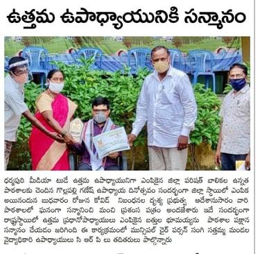 వృత్తి - ప్రవృత్తి ఉపాధ్యాయ వృత్తిని నేను కేవలం ఒక ఉద్యోగంగా కాక, ఒక బాధ్యతగా స్వీకరించాను. గత దశాబ్ద కాలానికి పైగా (2009 నుండి) విద్యార్థులకు విద్యాబుద్ధులు నేర్పిస్తూ, ప్రస్తుతం జగిత్యాల జిల్లాలోని బీర్పూర్ మండలంలోని ప్రాథమికోన్నత పాఠశాల, తాళ్ళధర్మారంలో స్కూల్ అసిస్టెంట్గా పదోన్నతి పొంది, ఉపనియామకం ద్వారా ధర్మపురి ప్రభుత్వ ఉన్నత పాఠశాలలో స్కూల్ అసిస్టెంట్ (తెలుగు)గా పనిచేస్తున్నాను. నా వృత్తి ధర్మానికి గుర్తింపుగా 2025 సంవత్సరానికి "తెలంగాణ రాష్ట్ర ఉత్తమ ఉపాధ్యాయ పురస్కారం", 2020లో "జగిత్యాల జిల్లా ఉత్తమ ఉపాధ్యాయ" పురస్కారం అందుకోవడం నాకు దక్కిన గౌరవంగా భావిస్తాను.