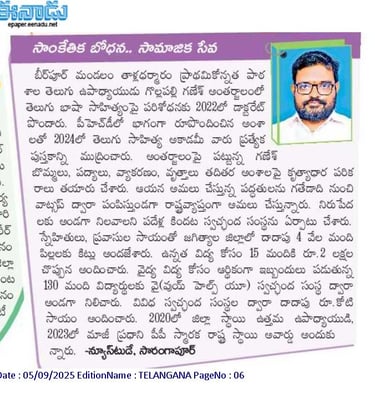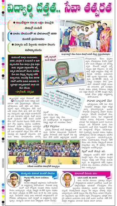 సేవామార్గం: ఉపాధ్యాయుడిగా తరగతి గదిలో పాఠం చెబుతున్నప్పుడు... అనేకమంది పేద విద్యార్థుల ఆర్థిక ఇబ్బందులను గమనించేవాడిని. పేదరికం కారణంగా ఏ విద్యార్థి చదువుకు దూరం కాకూడదని ఆలోచన నుండే 2016లో "విద్యార్థి దత్తత కార్యక్రమం" (Student Adoption Program) పుట్టింది. నా మిత్రులు, దాతల సహకారంతో ఇప్పటివరకు సుమారు 4000 మందికి పైగా నిరుపేద విద్యార్థులకు నోట్బుక్స్, బ్యాగులు, ఇతర విద్యా సామాగ్రిని (Education Kits) అందించగలిగాము. సుమారు 15 మంది విద్యార్థులకు ఉన్నత చదువులకు ఆర్థిక సహాయం అందిస్తున్నాము.